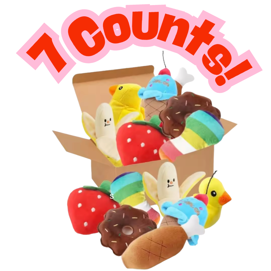 No batteries. No mess. Just pure squeaky joy in a box of seven.